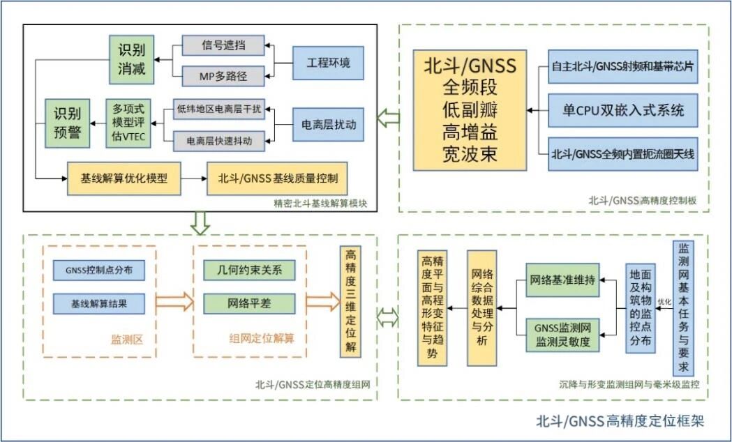 吉欧电子在项目中,重点研究了北斗+5G高精度定位技术,自主研发了低成本、低功耗、高性能的北斗/GNSS精密定位终端,并突破复杂环境下的信号干扰难题,构建毫米级北斗定位监测系统。其技术亮点包括: